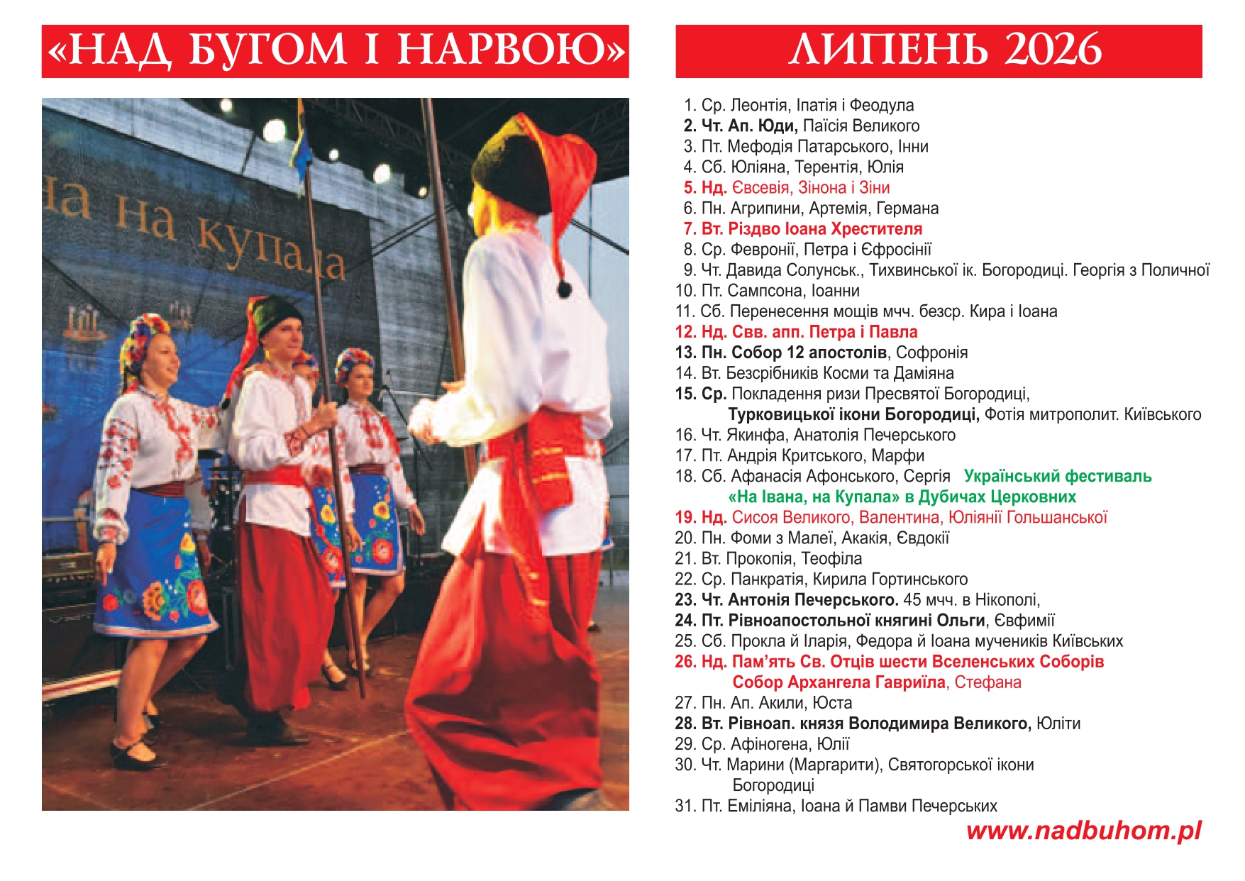 Zapraszamy do kupowania i czytania Ukraińskiego Pisma Podlasia „Nad Buhom i Narwoju”. Nr 5/2025 wraz z kalendarzem na 2026 rok jest dostępny w sieci Kolporter na terytorium całej Polski w następujących miejscowościach:
