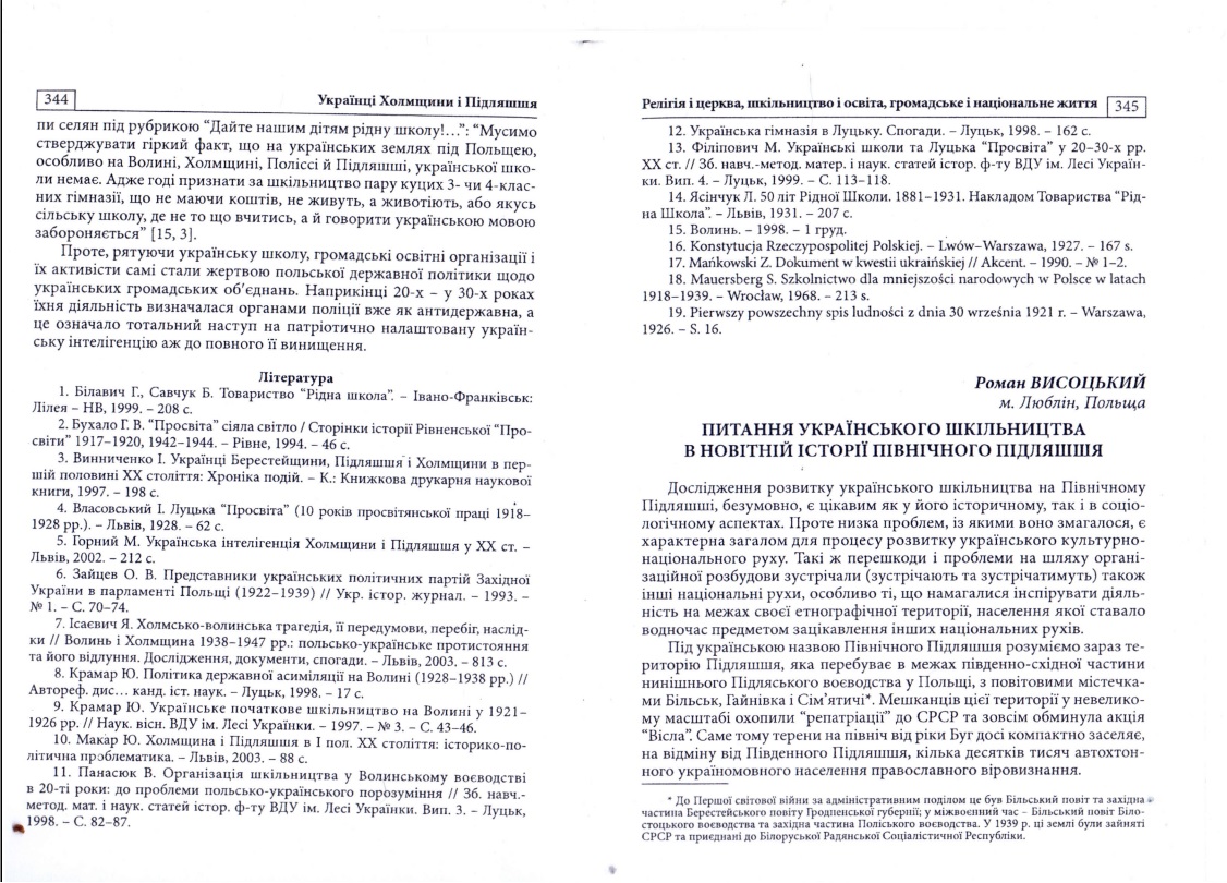 Запрошуємо ознайомитися зі статтею Романа Висоцького з 2008 р. “Питання українського шкільництва в новітній історії Північного Підляшшя”, яка була надрукована в книжці “Українці Холмщини і Підляшшя”:
